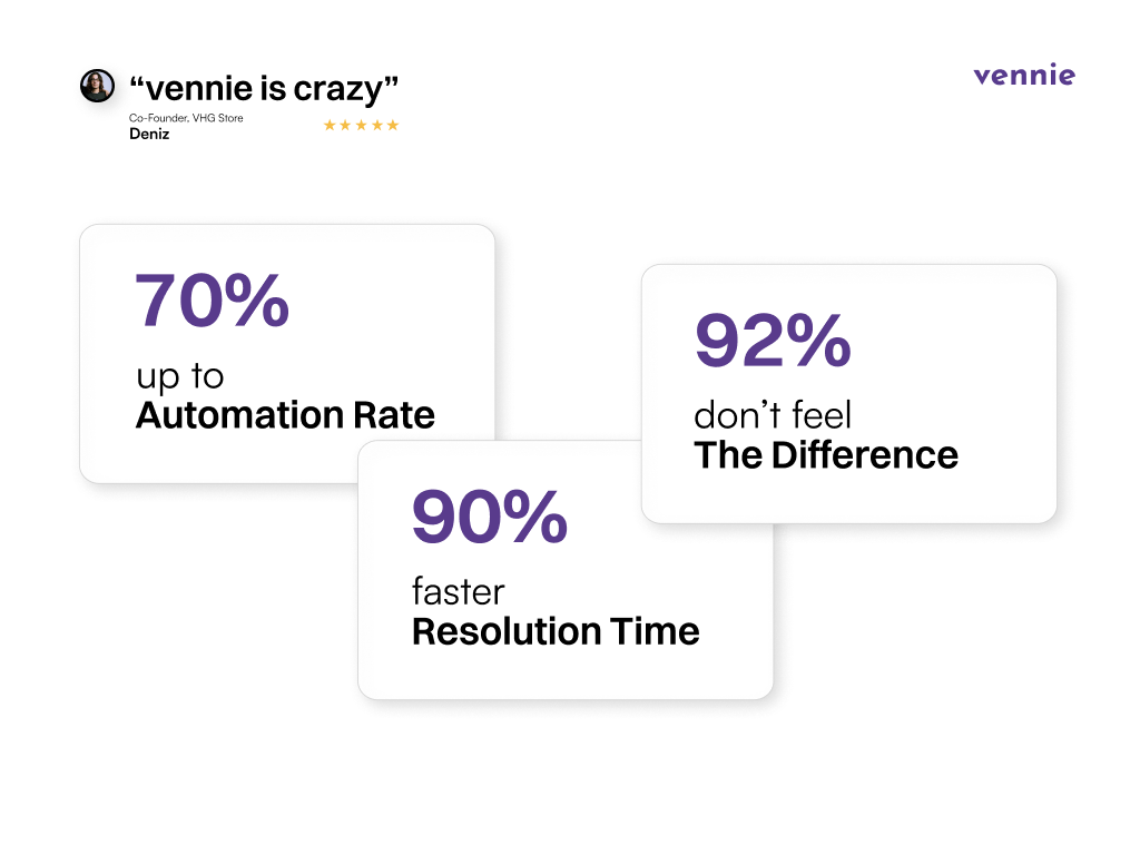 vennie automates up to 70% of eCommerce support tickets through AI.