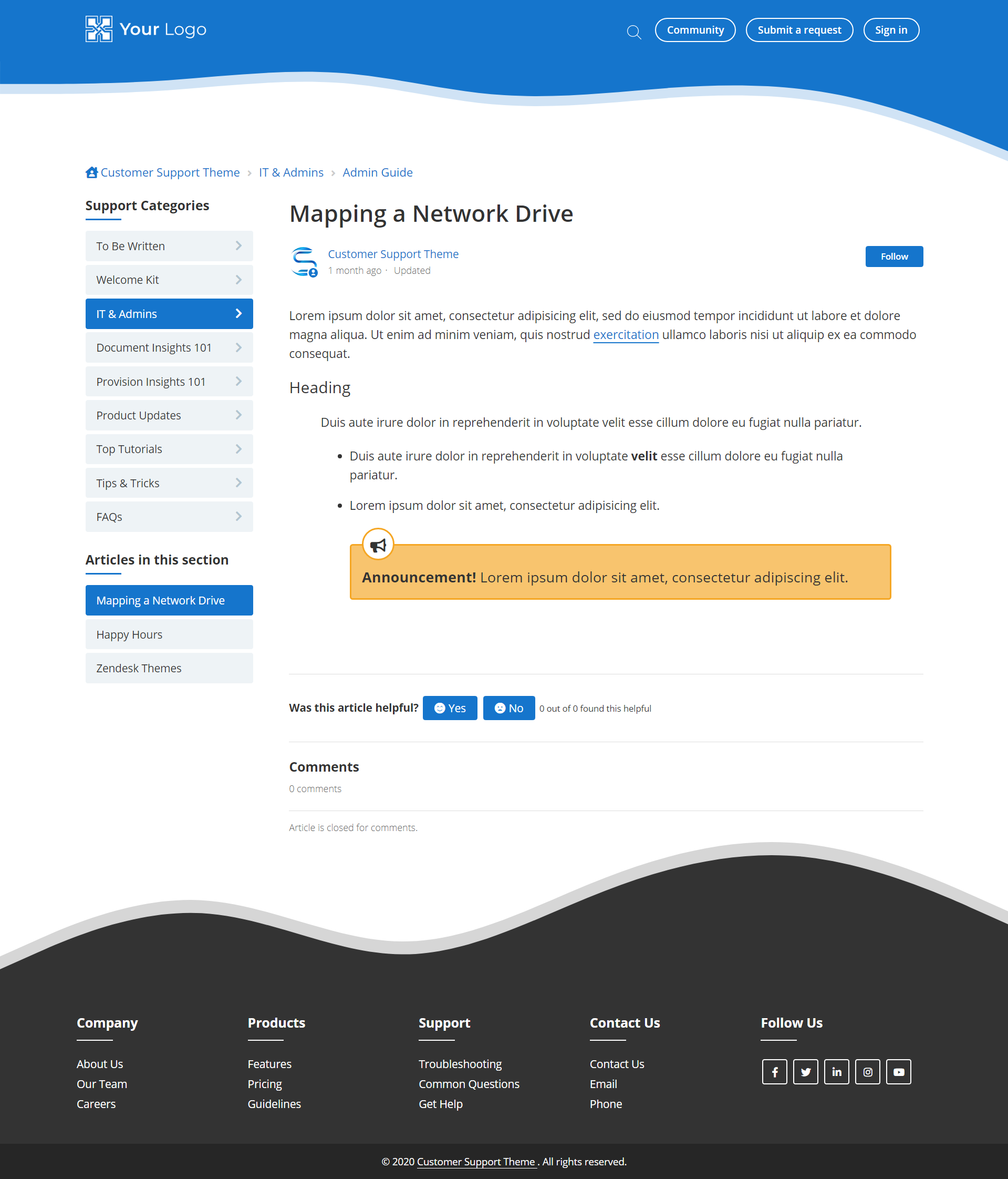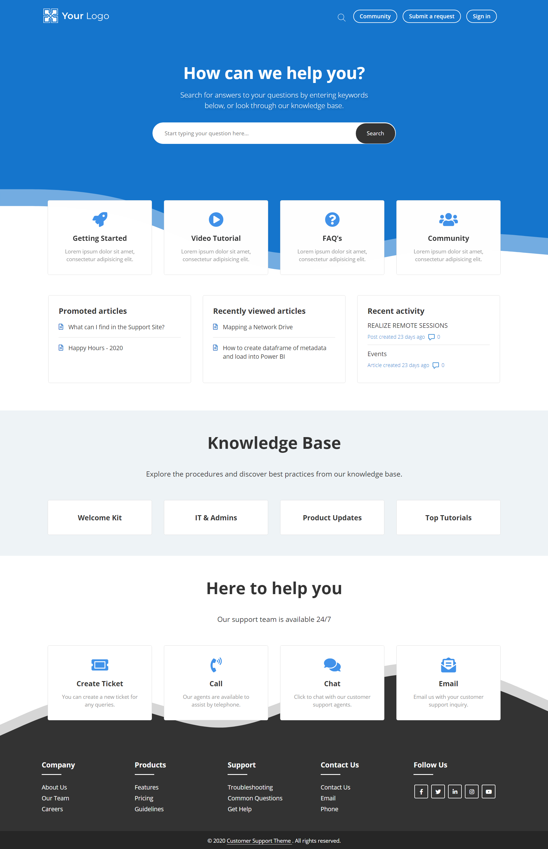 Wavy is a professional Zendesk guide theme for all businesses, clean and minimal corporate Zendesk theme for all agencies to showcase their faqs and offerings.