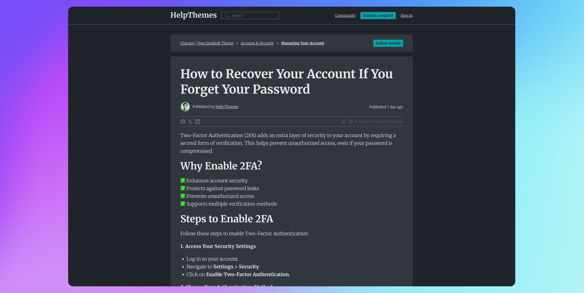 Really love this theme! Super easy to set up and customize, even without any coding. The dark mode looks awesome and gives our help center a clean, modern vibe. Definitely one of the best free themes I’ve used as a Zendesk admin.